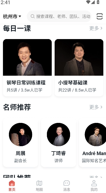 在课程推荐板块能看到音乐、舞蹈、绘画、书法等各类学习内容。