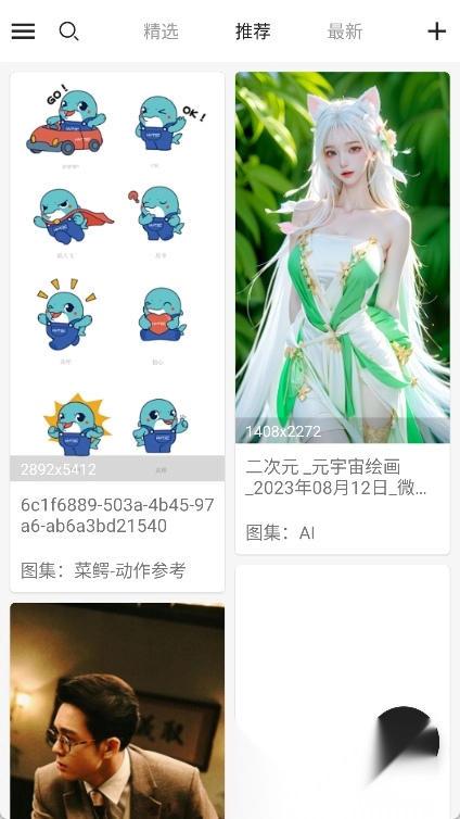 搜索图片:用户打开应用后,能够输入关键词进行图片搜索,像人物、风景、动物这类关键词都可以使用。