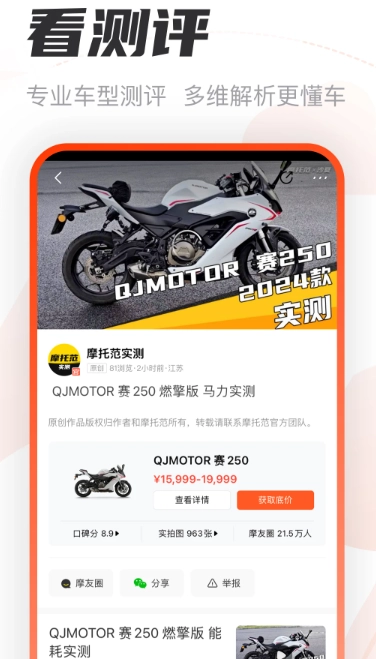 很多用户可能不清楚摩托范的前身是什么?其实它之前叫哈罗摩托,是个功能相当齐全的摩托车社区,能提供车型查询、专业摩托测评、二手车交易以及装备选购等服务。热爱摩托车的朋友千万别错过这款摩托范,这里涵盖了你需要的各类信息。感兴趣的话就来下载安装吧!