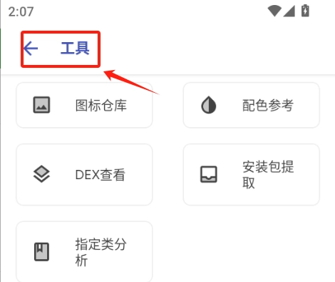 点击底部的“我的”即可进入工具窗口,这里包含图标仓库、配色参考、安装包提取等多种实用工具。