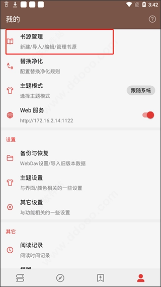 我的-点击"书源管理”;