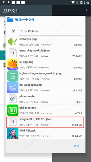 选择书源文件所在的路径,并选择书源;