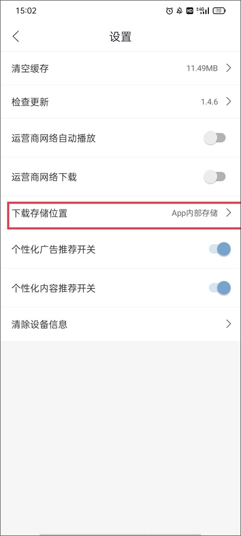 软件默认的存储位置是存储空间,若想把优质视频资源存到手机内存里,可切换为第一个选项“手机存储”。
