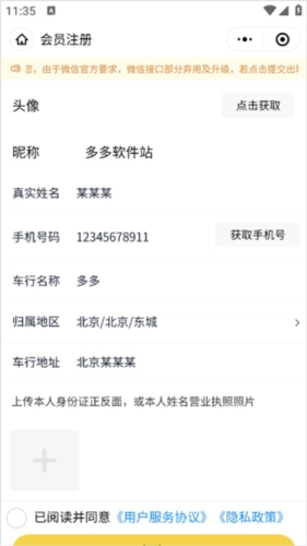 2、此时会进入微信小程序,于该小程序内输入相关车商信息就能完成注册。