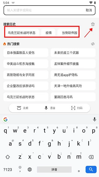 2、这里能够看到之前自己的搜索记录,点击右上角图标,如图所示