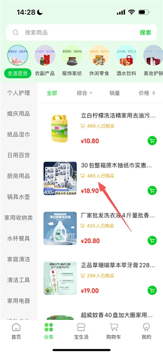 1. 于可宝网首页,点击“生活百货”,进入相应商品列表页面。