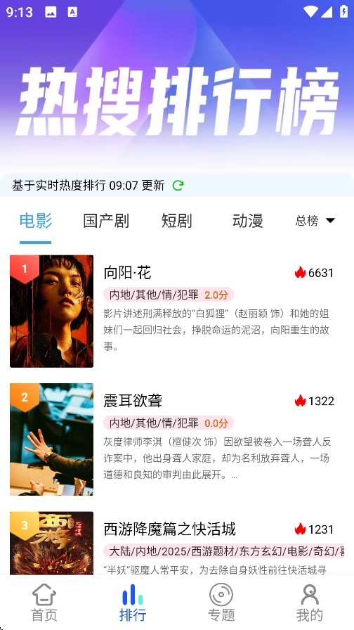 4、在排行榜中可以查看实时热门影视剧。
