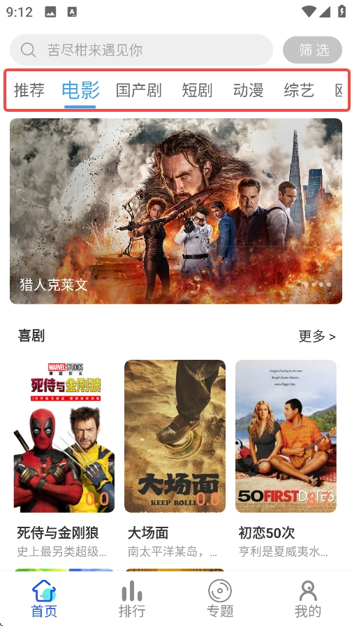 2、点击上面的选项即可查看各个类型影视专区。