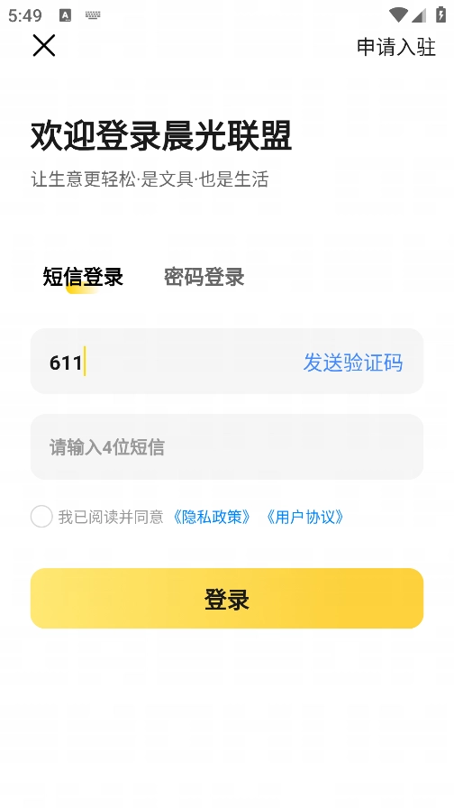 使用总店账号或者拥有权限的管理员账号登录晨光联盟App,随后进入后台管理界面。