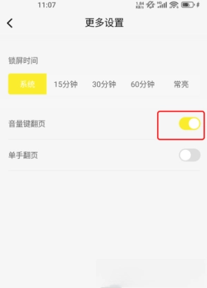 4. 开启“音量键翻页”功能即可使用。