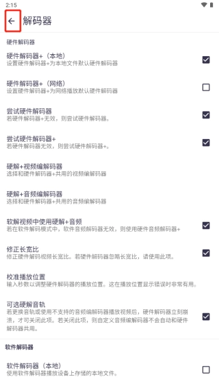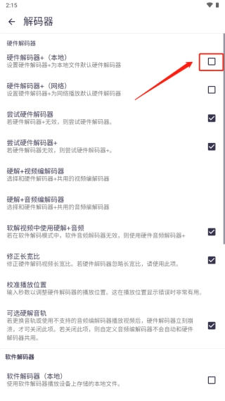 4、将“硬件解码器+(本地)”打开