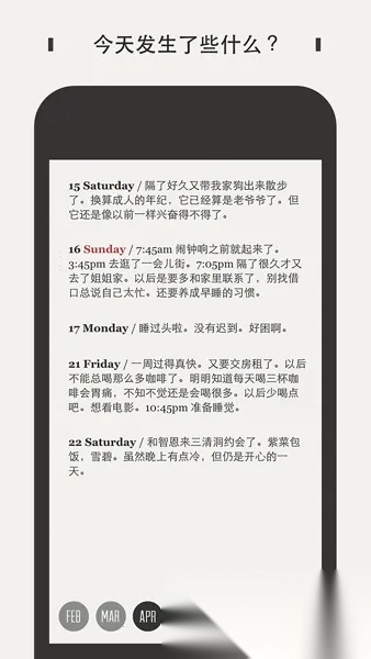 4、支持日记的编写、修改、搜索与删除操作,还可按月份、年份或故事视图进行查看。