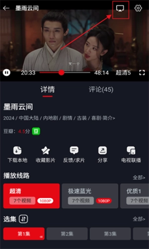 4、投屏与弹幕功能,一键即可投屏至电视,通过弹幕互动能随时进行“云吐槽”。