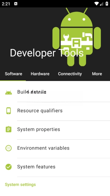 Developer Tools是一款手机性能检测类软件,在它里面你能看到不少内容,这些功能都能在手机运行软件时进行计算,进而告知用户手机的相关性能情况以及测试结果。软件的界面设计得很简洁,操作起来也十分容易上手哦~