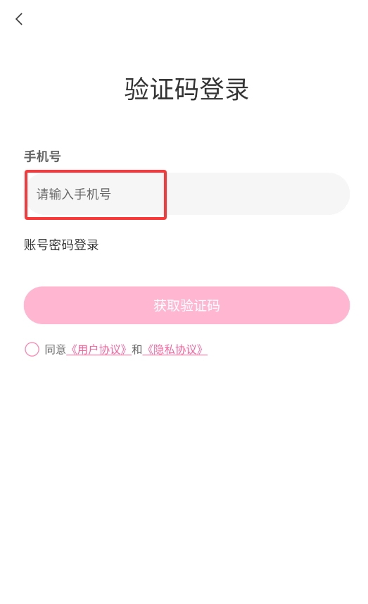 1、启动伴交友,在登录界面输入个人手机号码并点击获取验证码按钮。