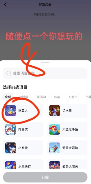 6.接着挑选你与好友想要挑战的项目,点击开始按钮就能进行。