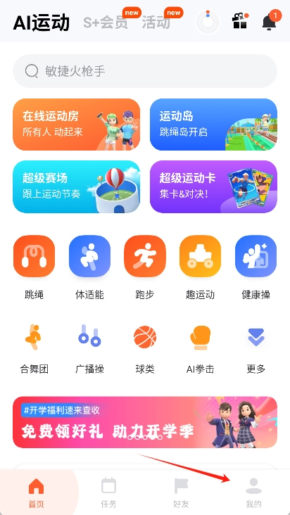 1、第一步要打开天天跳绳,点击底部导航栏的“我的”选项进入对应的界面。