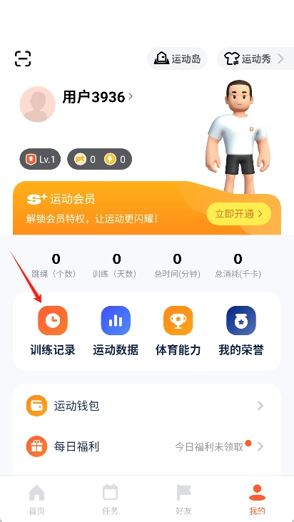 2、在“我的”界面中找到并点击“训练记录”选项。