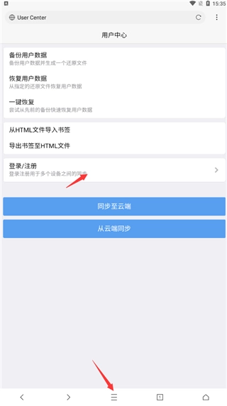 2、点击下方选项完成浏览器登录或注册操作,登录后即可实现数据同步。