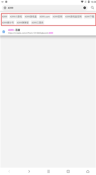 4、接下来我们在搜索栏中查找你所需的内容就可以了,这里拿搜索4399作为例子。