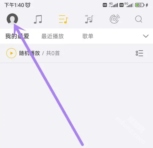 1、进入海贝音乐,点击页面左上角个人头像。