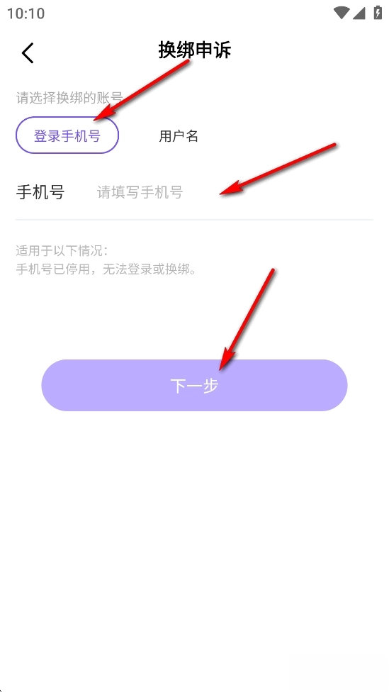 点击【登录手机号】,输入手机号后,点击【下一步】进行验证换绑操作。