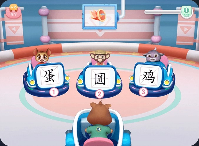 3、在卡丁车竞速识字的玩法里,孩子得快速辨认蛋、圆、鸡这类字,趣味感拉满。