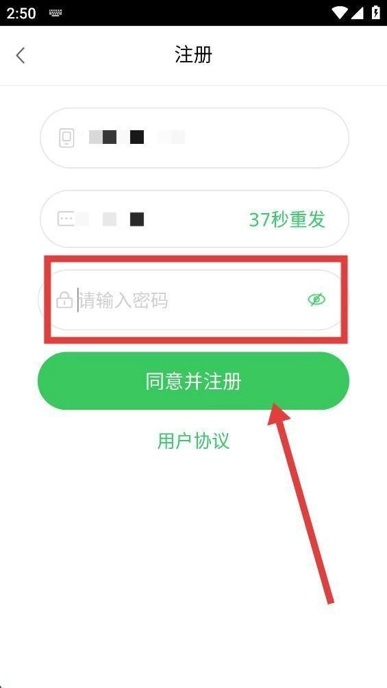 3、在输入框中设置登录密码,设置完成后点击“同意并注册”按钮。