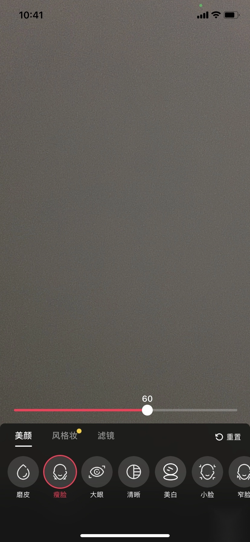 2、在美化界面,可设置美颜状态和选择滤镜。