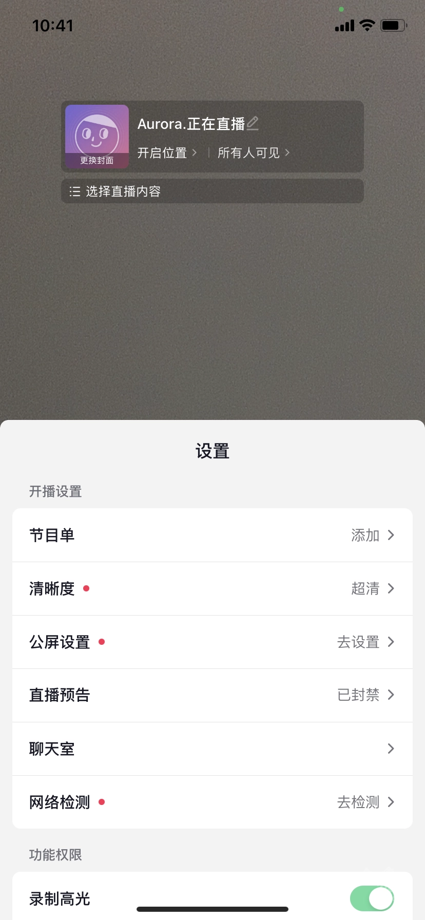 4、进入设置界面后,能够对节目单、清晰度、公屏、直播预告、聊天室等各项内容进行设置。