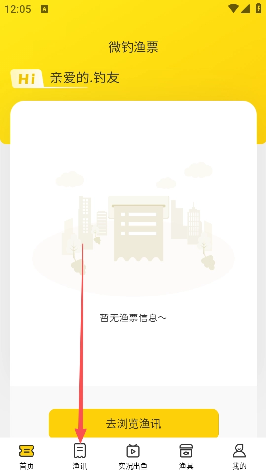 1.进入软件后点击界面下方的渔讯