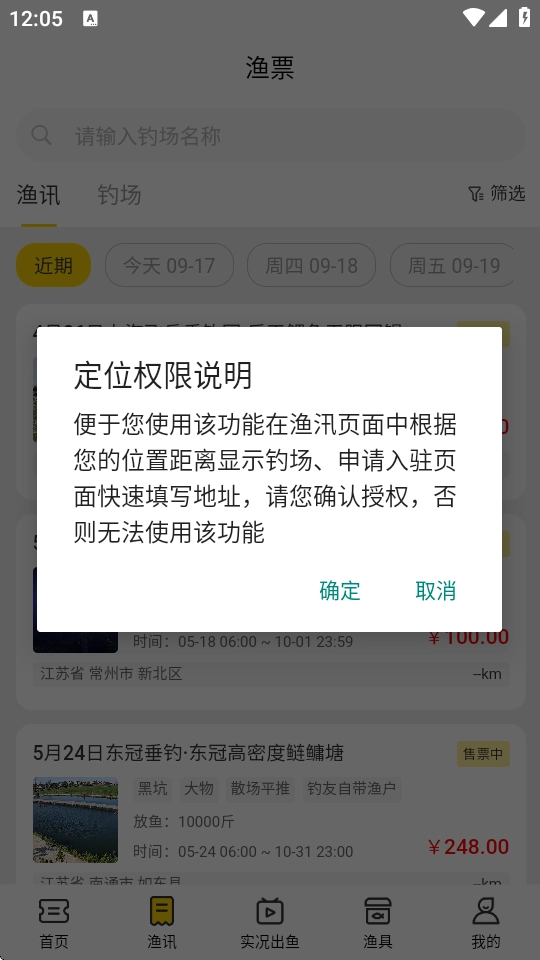 2.在渔讯界面选择上方的钓场