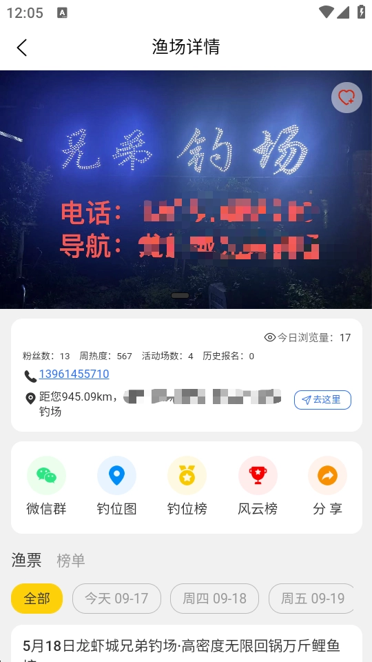 4.点击导航就能前往钓场了