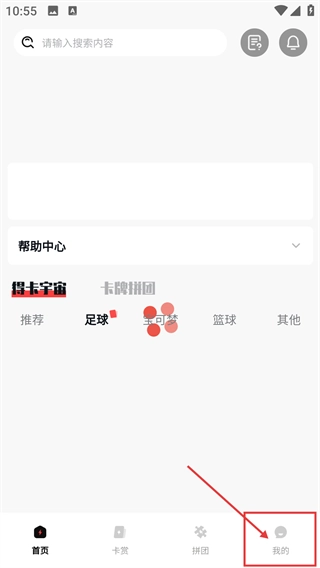 2、在包含【搜索你想要的】【得卡宇宙】的首页,点击底部的【我的】按钮,就能进入对应的个人中心页面。