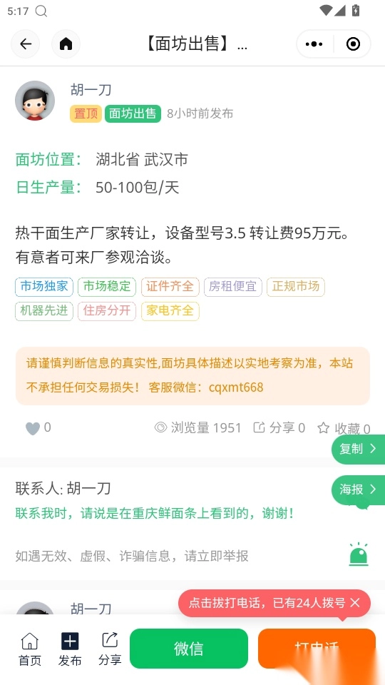 4. 最后就能查看你所查询的面坊出售详情信息,以便进一步了解相关情况。