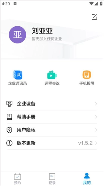 4、在我的页面中,用户可查看企业通讯录,开启远程会议和手机投屏,还能够查看已连接的企业设备。