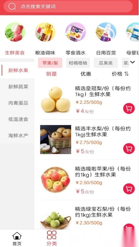 商品种类十分齐全,重点提供生鲜食品、日用百货等贴近日常生活的数万种商品。
