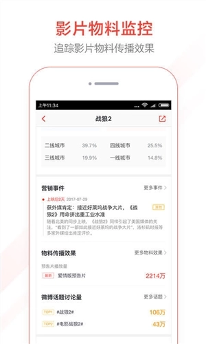3.电影营销监控系统:结合影片受众画像,有效量化营销效果,精确定位影片受众,并监控影片物料投放效果。