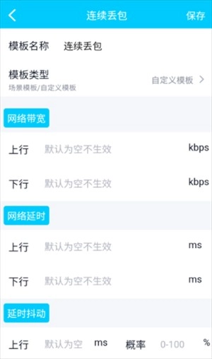 上行链路和下行链路延迟、延迟抖动、网络带宽、任意丢包、连续丢包、TCP/UDP协议控制(模拟一些运营商不支持UDP的弱网络场景)。